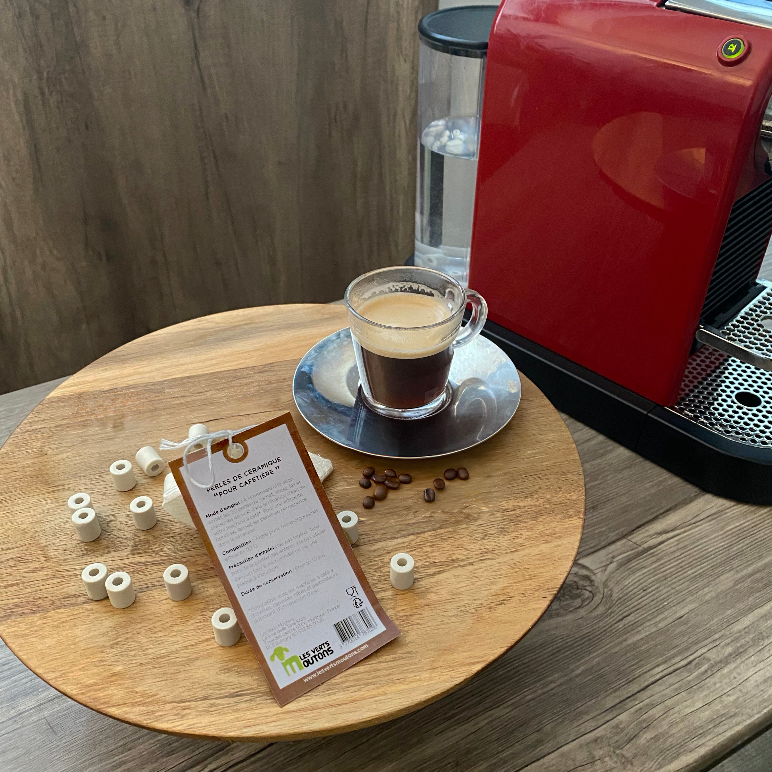 Placez les 20 perles en vrac dans le réservoir d’eau de votre cafetière (50 -70 cl) .